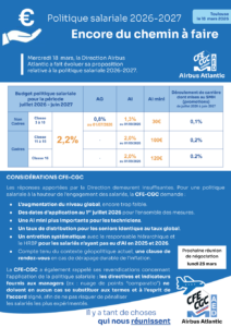 Mercredi 18 mars, la Direction Airbus Atlantic a fait évoluer sa proposition relative à la politique salariale 2026-2027.