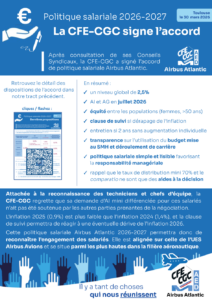 Après consultation de ses Conseils Syndicaux, la CFE-CGC a signé l’accord de politique salariale Airbus Atlantic.