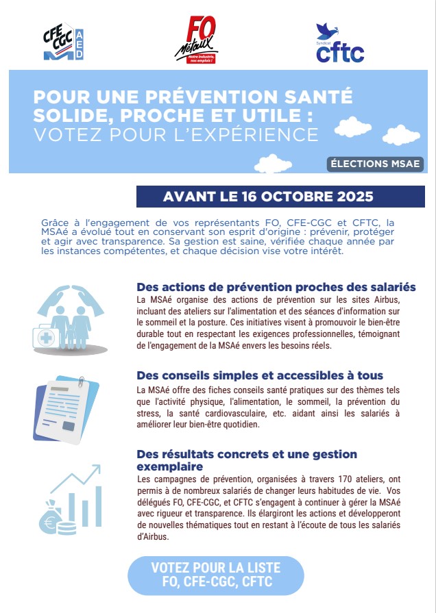 La CFE-CGC, via vos représentants, participe à la gestion et aux orientations de la MSAé.